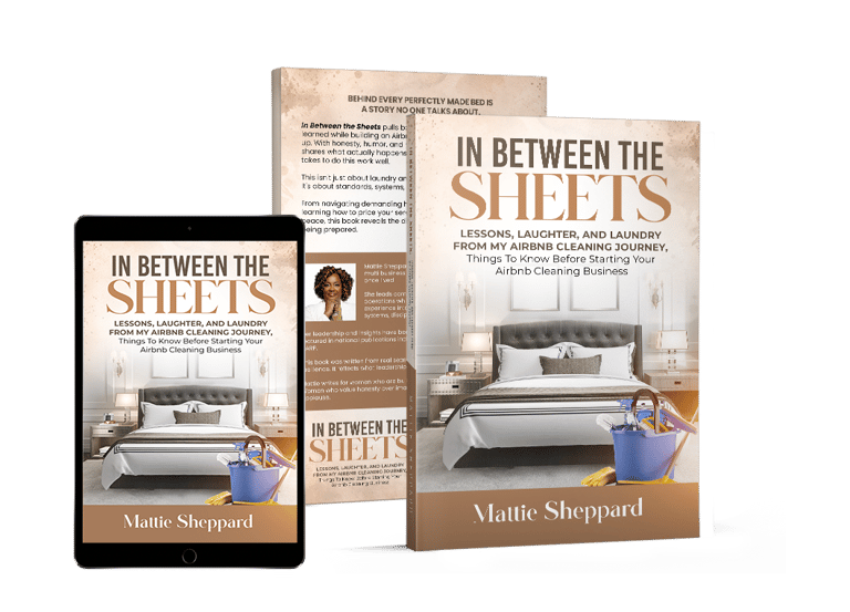 In Between The Sheets Lessons, Laughter, and Laundry: From My Airbnb Cleaning Journey - Things To Know Before Starting Your Airbnb Cleaning Business walks you through exactly what to do before, during and after - so you build right from the start.